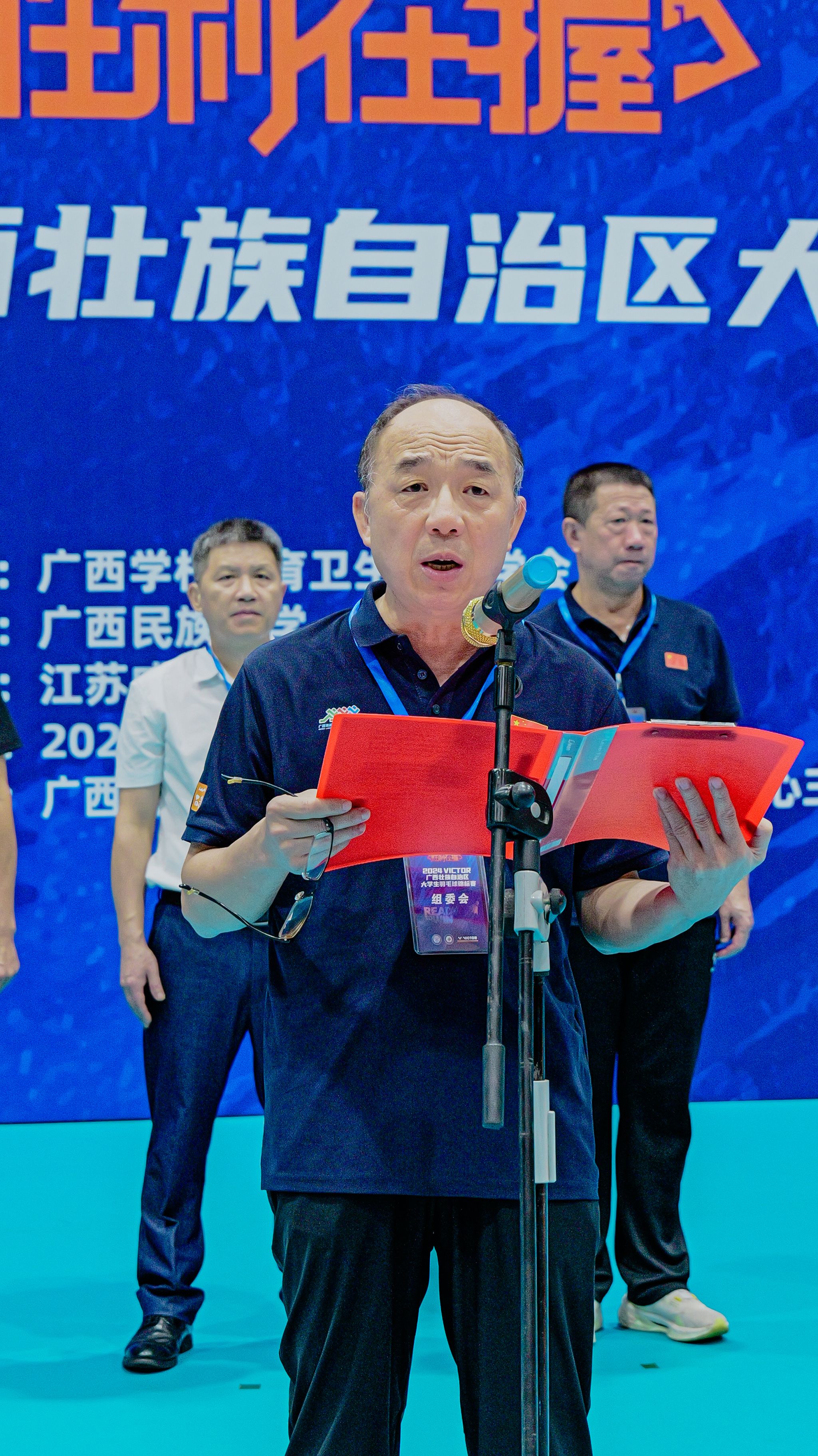 吕俊彪宣布2024VICTOR广西壮族自治区大学生羽毛球锦标赛开幕。