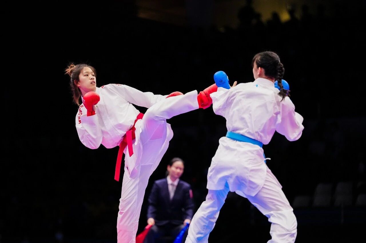 11月6日,中华人民共和国第十五届运动会群众比赛空手道项目在澳门综艺馆拉开帷幕。我院2024级运动训练专业学生苏家洁奋勇拼搏,代表广西夺得女子公开组+61公斤级铜牌,为学校和广西赢得了荣誉。