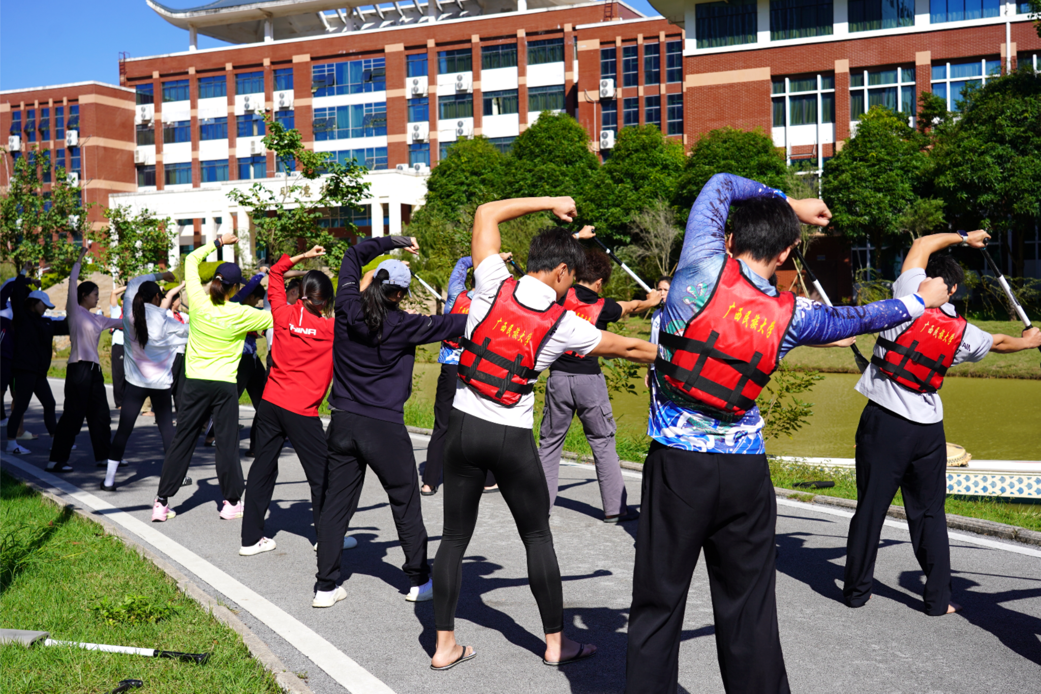 调研组一行首先考察了我校龙舟项目。龙舟队教练向调研组介绍了队伍发展历程和参赛成绩。队员们依次进行了陆上划桨演示和水上实战训练,动作整齐、配合默契,赢得调研组掌声。演练后,调研组与教练围绕日常训练和赛事准备作了交流。