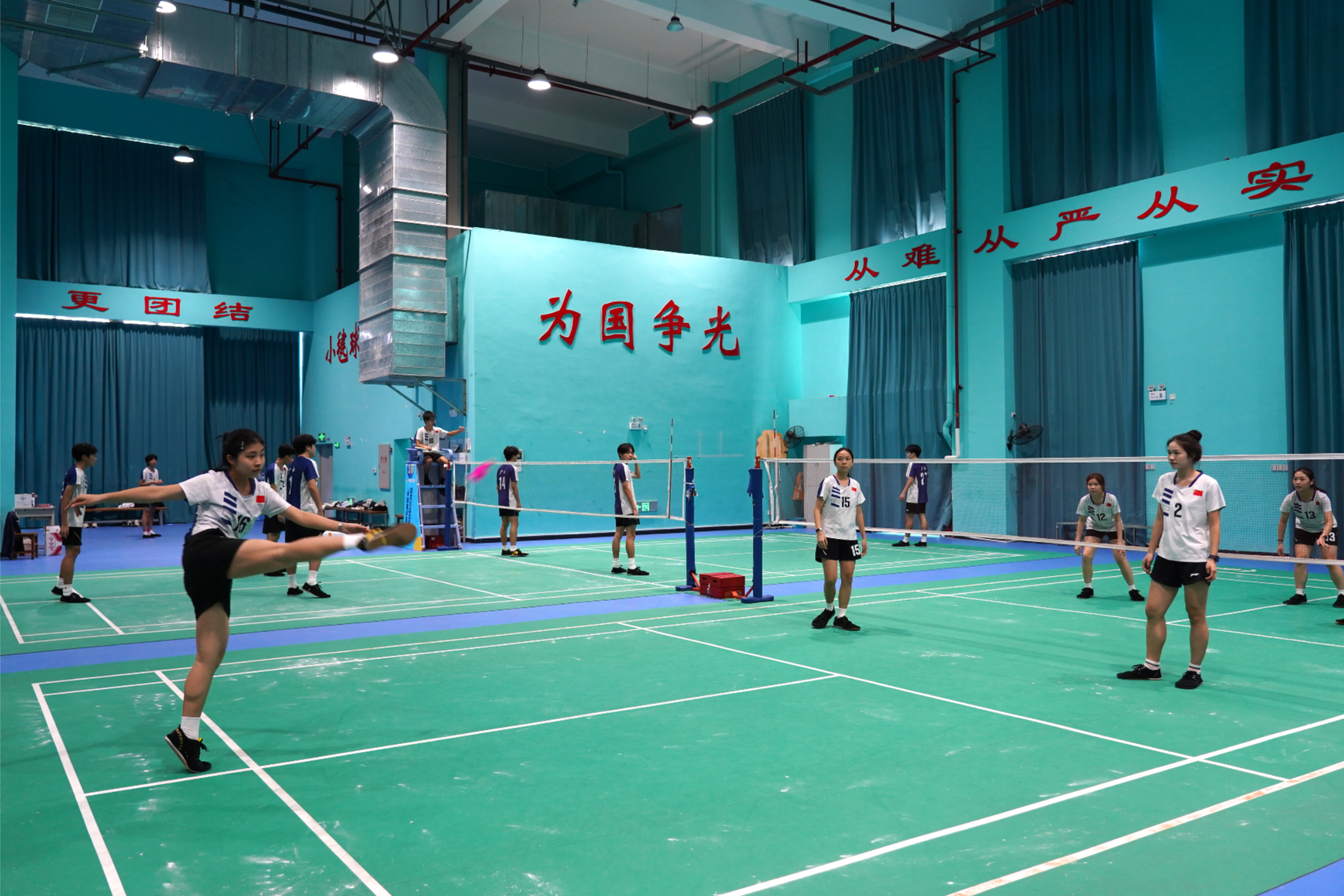 随后,调研组移步至体育馆考察珍珠球项目,珍珠球教练讲解了该项目的起源、规则和我校推广成果。队员们现场演示战术配合和抄网得分等技巧,展现出项目的对抗性与趣味性,获得调研组肯定。