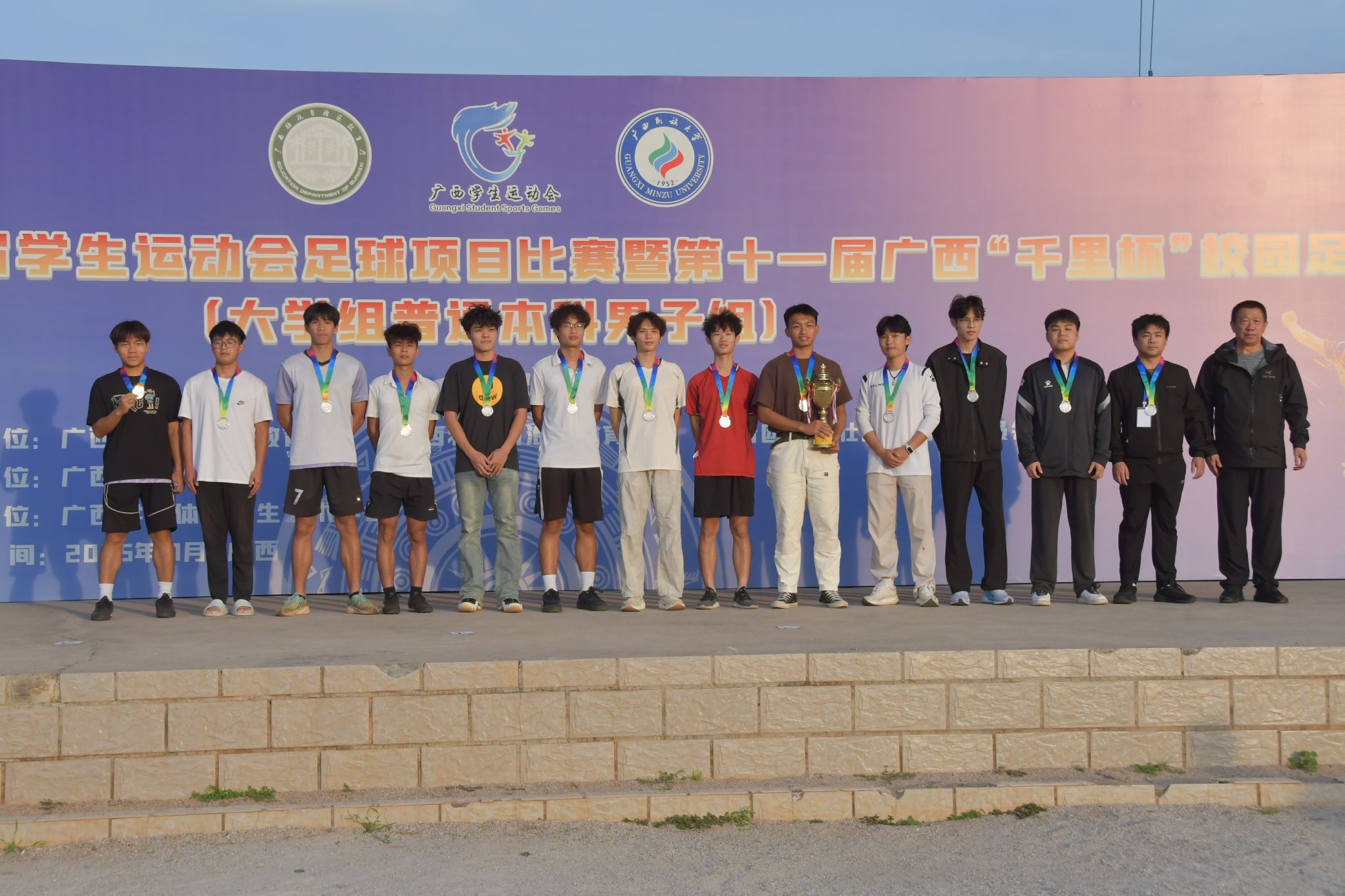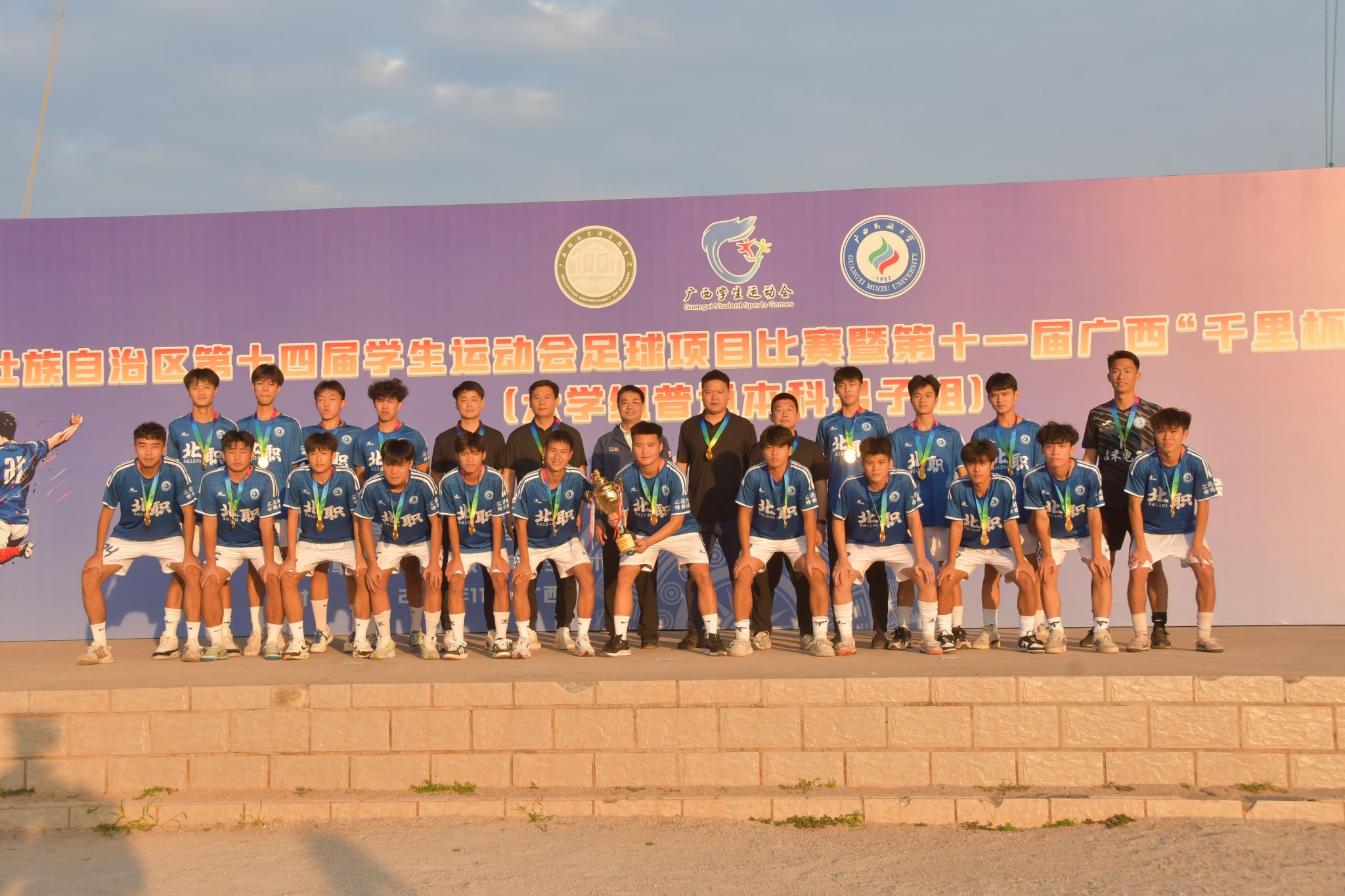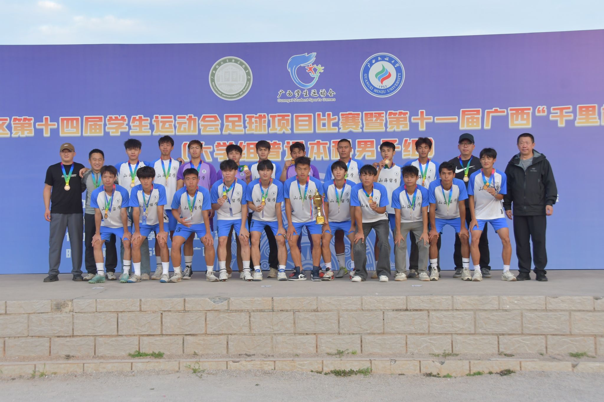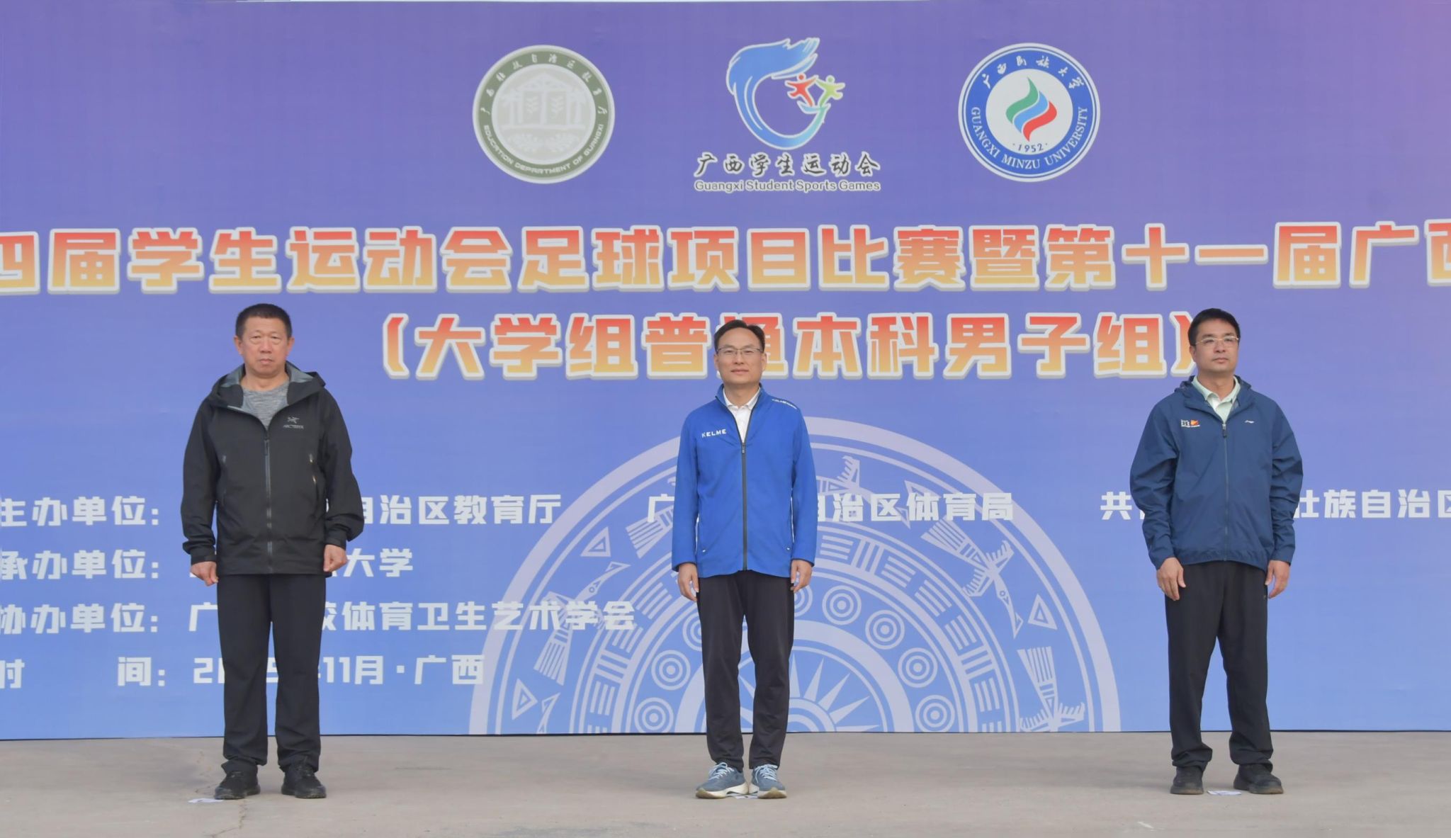 11月16日下午,广西壮族自治区第十四届学生运动会足球项目比赛暨第十一届“千里杯”校园足球联赛闭幕式在广西民族大学思源湖校区圆满举行。自治区教育厅体育卫生与艺术教育处处长万锋锋,自治区教育厅体育卫生与艺术教育处一级调研员蒙红光,广西学校体育卫生艺术学会会长、广西民族大学体育与健康科学学院院长蒋东升,以及各位教练员、运动员共同参加了闭幕式。