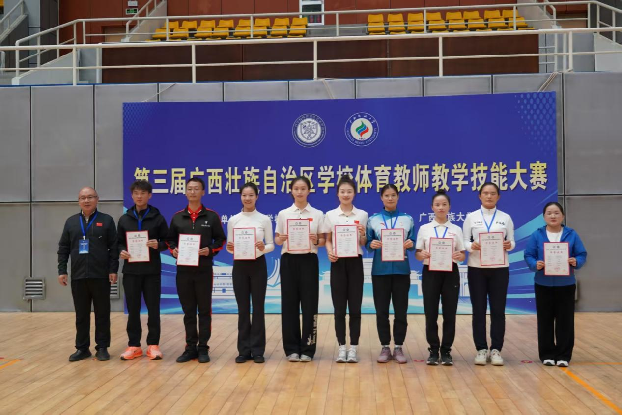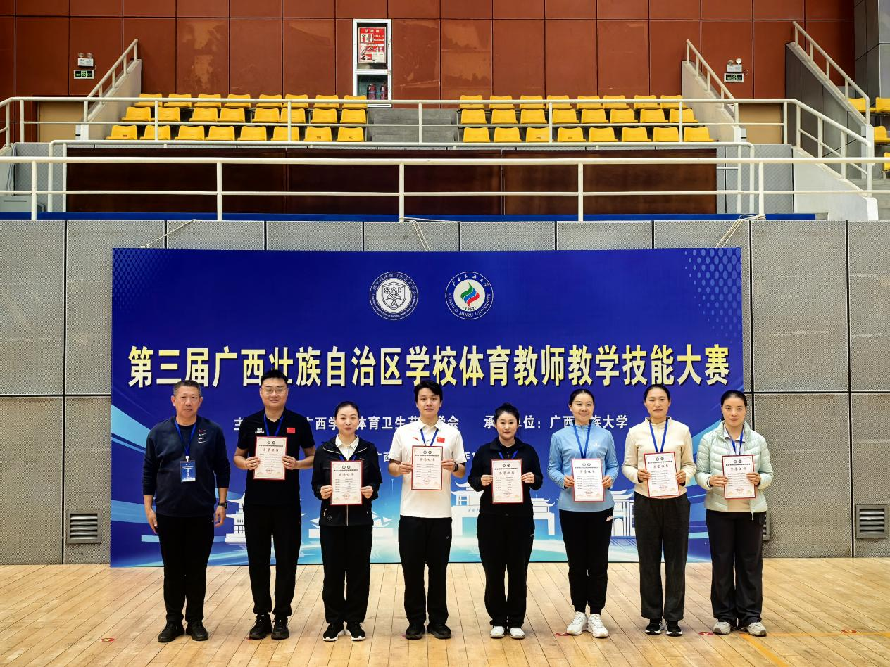 12月7日,由广西学校体育卫生艺术学会主办、广西民族大学承办的第三届广西壮族自治区学校体育教师教学技能大赛圆满落幕。我院派出的6名参赛教师凭借扎实的专业功底和出色的教学表现,斩获9项一等奖、4项二等奖、1项三等奖的历史最佳成绩,充分展现了“民大体育”的强劲实力与育人风采。