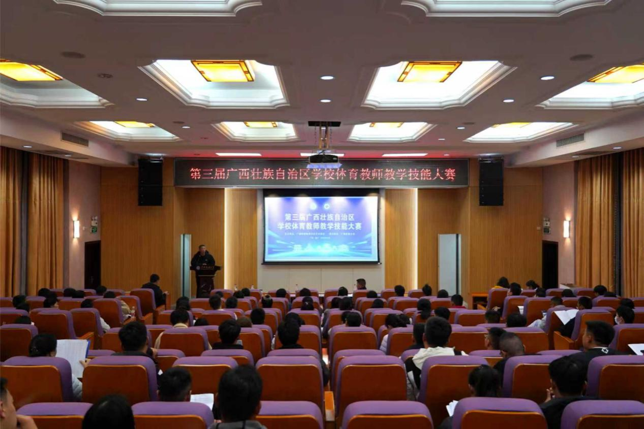 本次大赛作为广西体育教育领域的高水平赛事,分为理论组和术科组两大类别,覆盖本科、高职高专、区直中专等多个学段及体育专业、公共体育等不同教学场景。比赛内容涵盖教学设计、说课、模拟上课等教师核心技能以及体育基本功两大模块,全面检验参赛教师的教学能力、专业素养与实践创新水平,为全区体育教师搭建了高质量的交流展示平台。