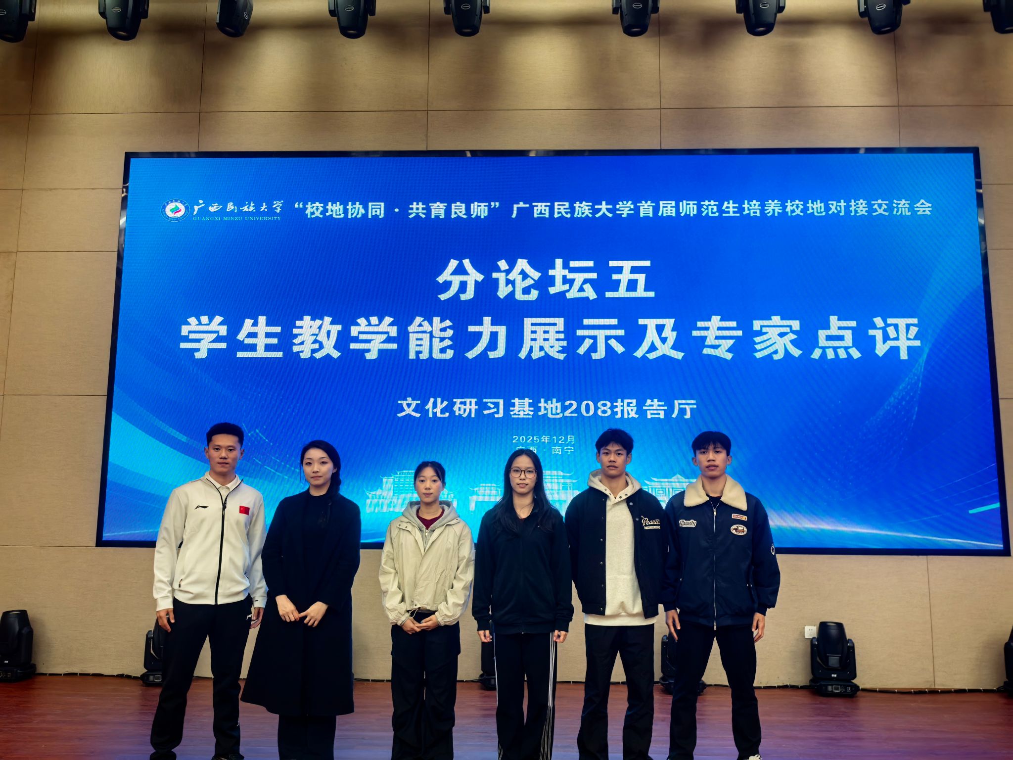为深化校地合作,助力师范生专业成长,12月28日,广西民族大学首届“校地协同,共育良师”师范生培养校地对接交流会顺利举办。我院2022级体育教育专业刘淇同学代表学院参加学生教学能力展示环节,凭借扎实的专业素养和出色的教学表现力,赢得了在场教师的一致好评。
