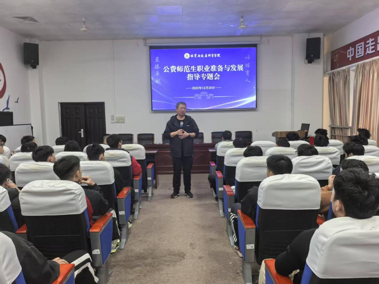 12月29日下午,我院在三楼东会议室召开公费师范生职业准备与发展指导专题会议。本次会议旨在帮助公费师范生进一步明确职业发展方向,系统规划学业与职业生涯。学院院长蒋东升、党委副书记时昌桂、相关班主任以及全体公费师范生参会。