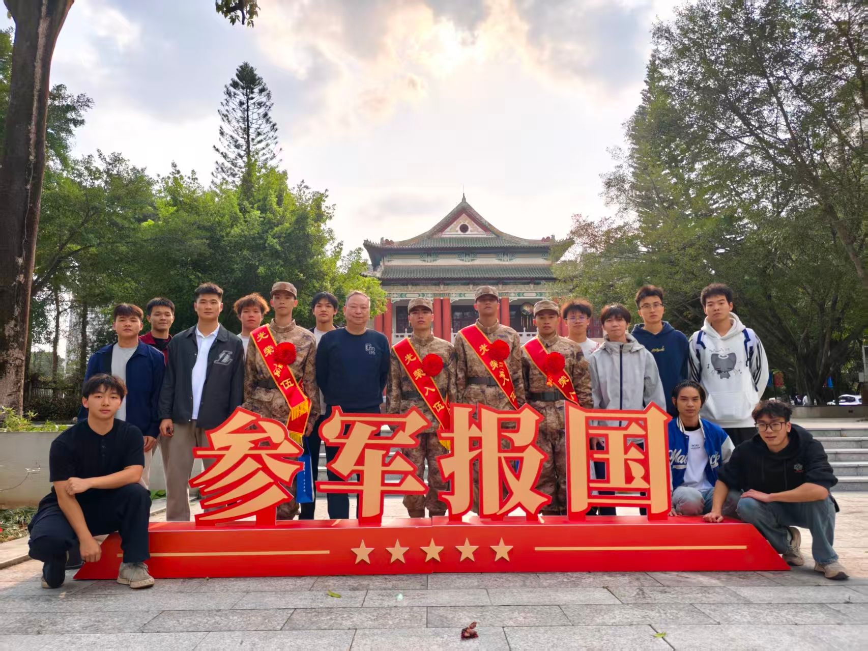 3月15日下午,广西民族大学举行2026年春季大学生参军入伍欢送会。体育与健康科学学院党委书记贺应魁、党委副书记时昌桂,辅导员唐剑辉、黄丽珠及学生代表共同见证学院5名优秀学子身披戎装、整装待发,踏上保家卫国的光荣征程。