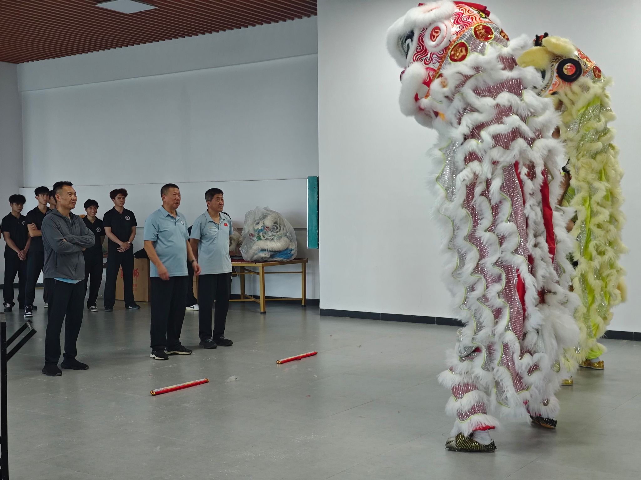 朱砂落笔,醒狮焕发灵气,随即腾跃起舞,摆头、扑闪、跳跃、回转,动作刚劲有力、灵动威武,将现场氛围推向高潮。狮舞呈祥,热烈的掌声与欢呼声此起彼伏,展现出师生昂扬向上的精神风貌。