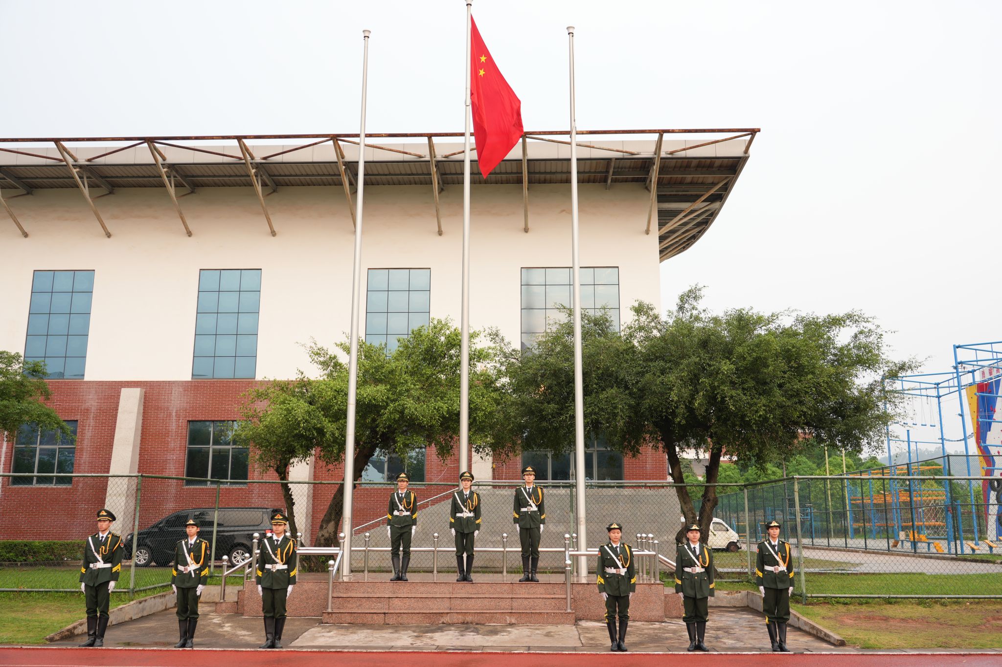 早上7点20分,仪式在肃穆的氛围中拉开帷幕。旗手迈着铿锵有力的步伐护送国旗入场,全体师生面向旗台,高唱国歌,注视五星红旗冉冉升起。