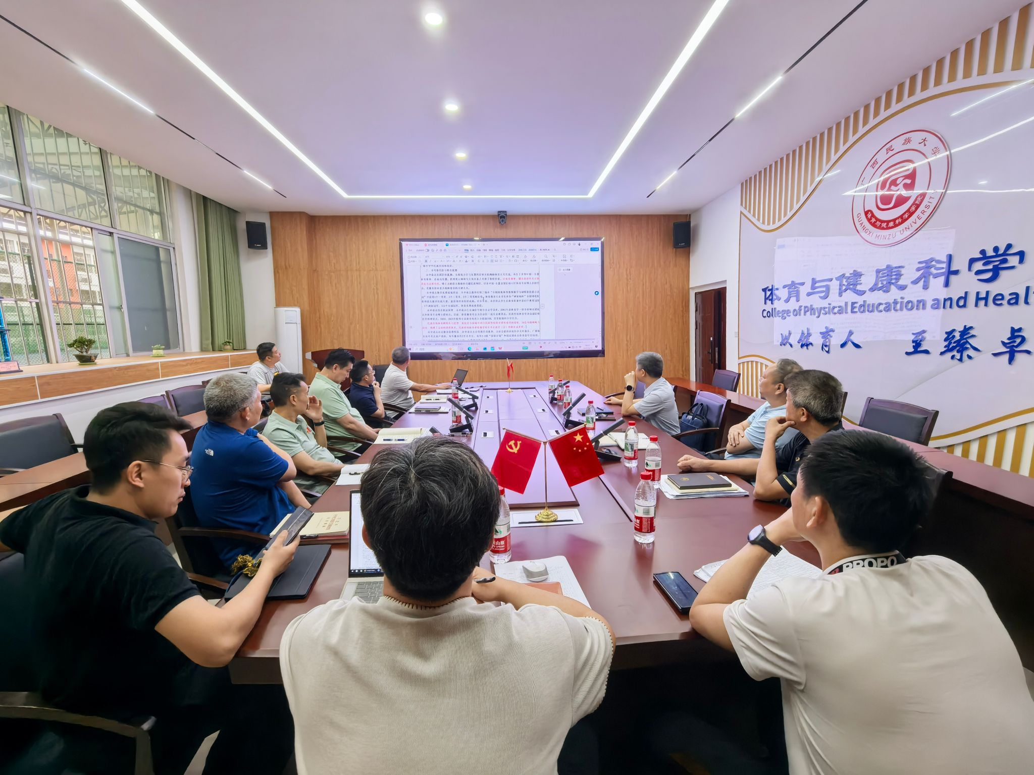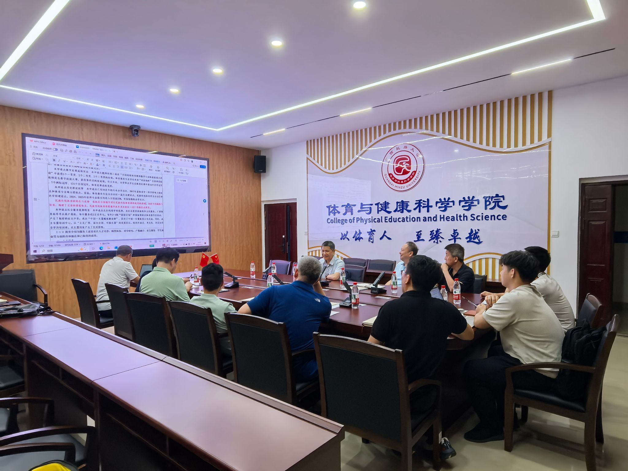 会上,院长蒋东升围绕体育专业博士学位授权点建设申报工作进行了汇报。吕俊彪认真听取汇报后,对下一步工作提出四点要求:一是坚定信心,持续完善师资队伍,加快补齐成果短板;二是立足广西区位优势和民族特色,充分发挥冠军资源、民族传统体育等办学特色;三是坚持“走出去”与“引进来”相结合,加强与兄弟院校的沟通交流;四是凝聚全院合力,统筹整合师资力量,共同推进申报工作落细落实。随后,与会人员围绕申报工作进行深入交流研讨,进一步明确了下一阶段的工作方向与重点任务。