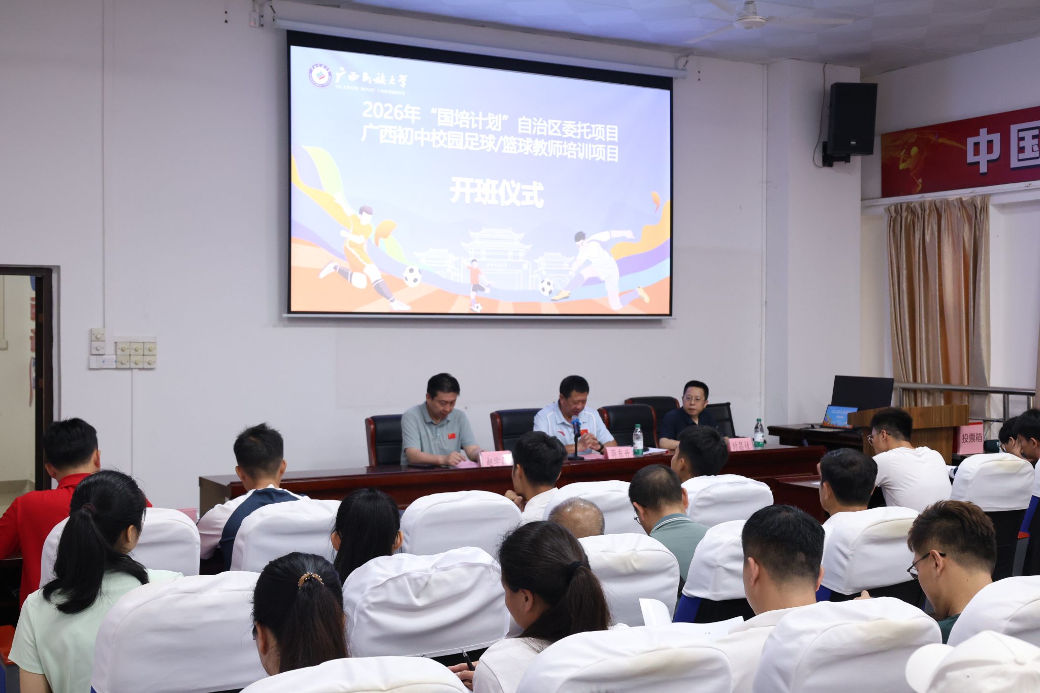 4月10日上午,由自治区教育厅主办、我校承办的2026年“国培计划”自治区委托项目——农村初中校园足球/篮球教师培训项目(第一期)开班仪式在思源湖校区体育馆隆重举行。来自全区7个地市的108名体育骨干教师齐聚一堂,开启为期7天的专业化、系统性培训。