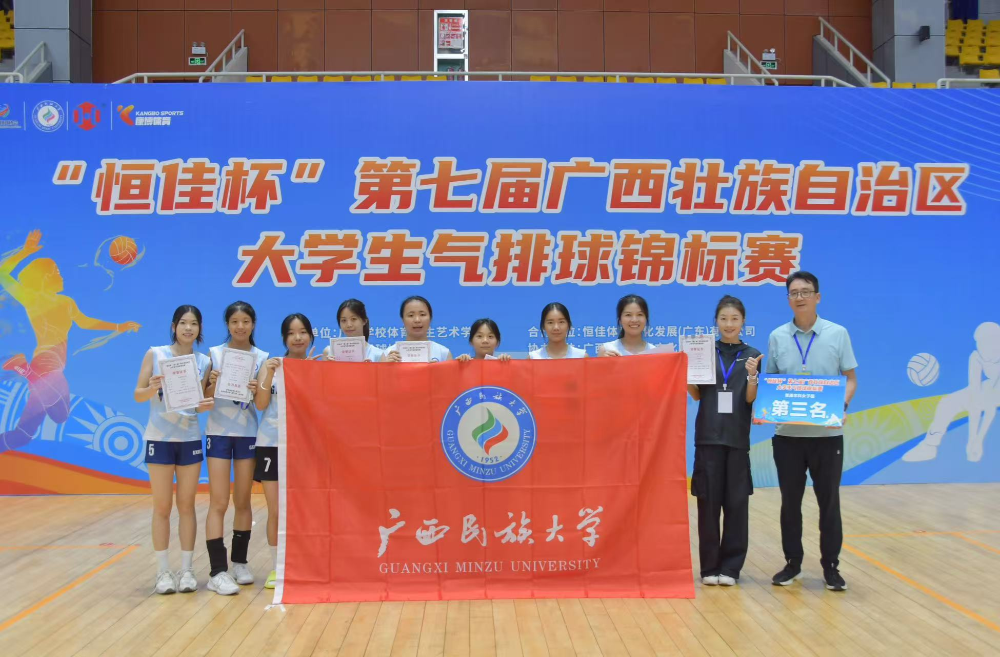 10月26日,“恒佳杯”第七届广西壮族自治区大学生气排球锦标赛圆满落幕。广西民族大学气排球队凭借顽强意志、精湛球技与默契配合,在赛场上奋勇拼搏,最终斩获多项殊荣,以卓越战绩为学校赢得荣誉。