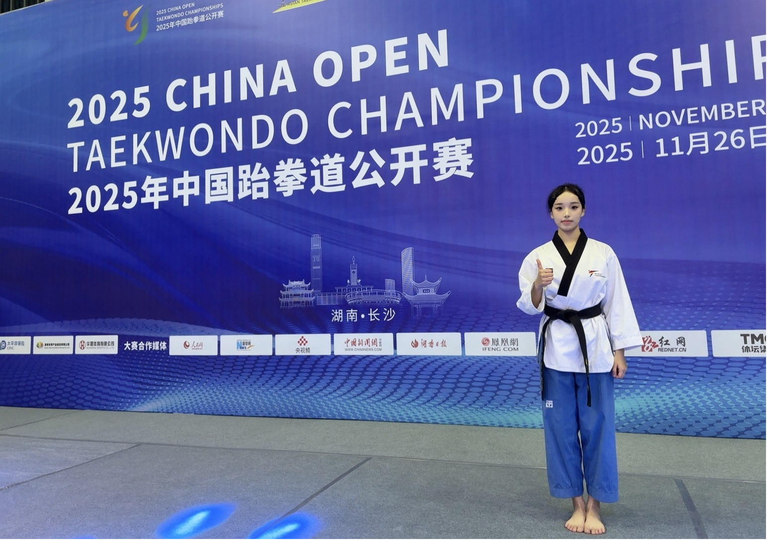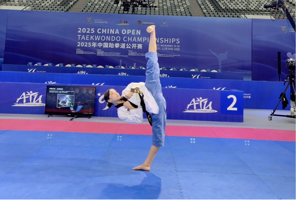 11月26日至29日,2025年中国跆拳道公开赛在湖南长沙隆重举行。在与世界级选手的激烈角逐中,我院2024级运动训练专业硕士研究生黄文静沉着应战、发挥稳健,最终在品势项目中斩获第五名,展现出民大学子卓越的竞技水平和顽强的拼搏精神。