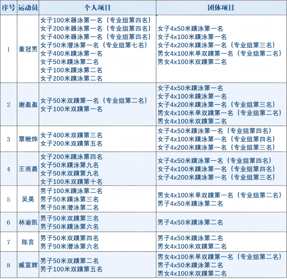 在校园组比赛中,我院派出8名运动健儿参赛,共斩获个人及团体项目11项冠军,充分彰显了我院在水上运动项目上的雄厚实力。